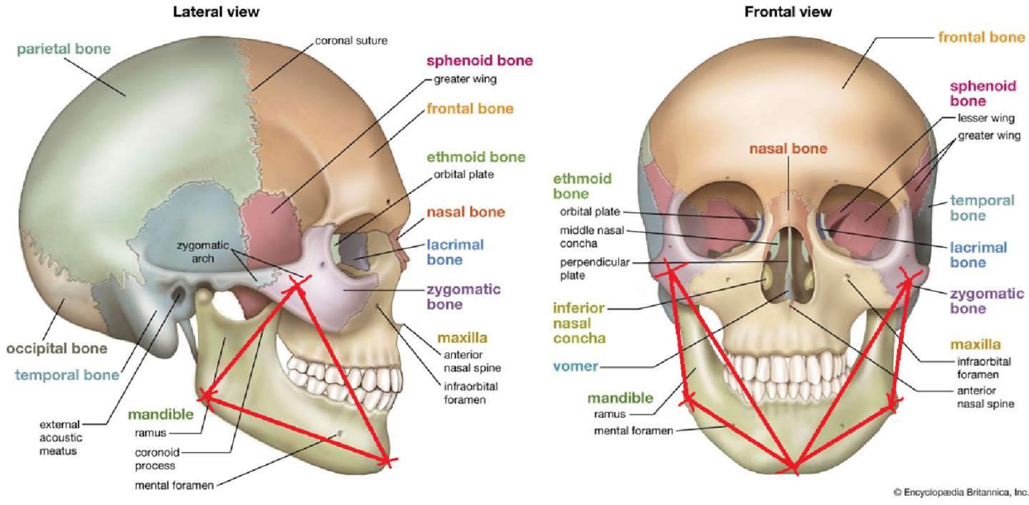 This triangle consists of the ramus/masseters, the zygos and the chin.